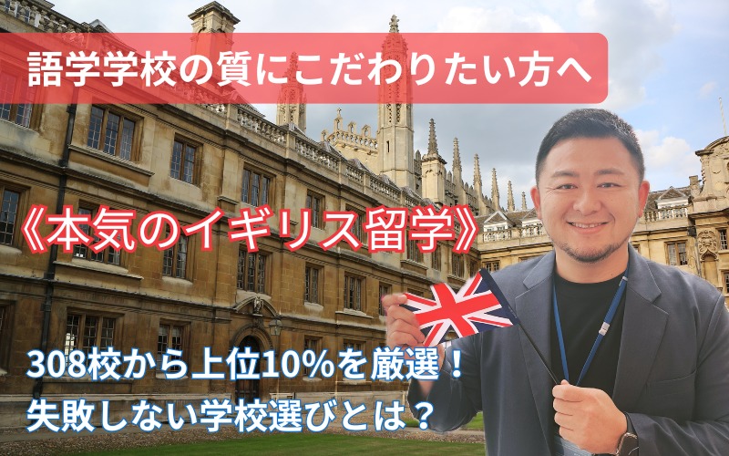 という方に向けて、British Councilの教育監査で特に高い評価を受けた上位10%の語学学校だけを厳選してご案内するサービスについてご紹介しています。