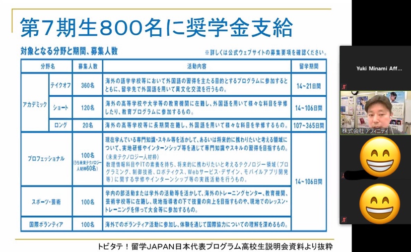 皆さんの留学を後押しできるよう、アフィニティも 『トビタテ!留学JAPAN』 へのチャレンジを全力でサポートします!
