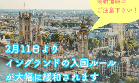 お役立ち情報2022年2月24日 2月24日より、イギリス国内でのコロナ規制が完全撤廃となりました。 2022年1月25日 2月11日より、イングランドの入国帰省が大幅に緩和されます。今回の新しい規定では、ワクチン接種完了者だけでな…