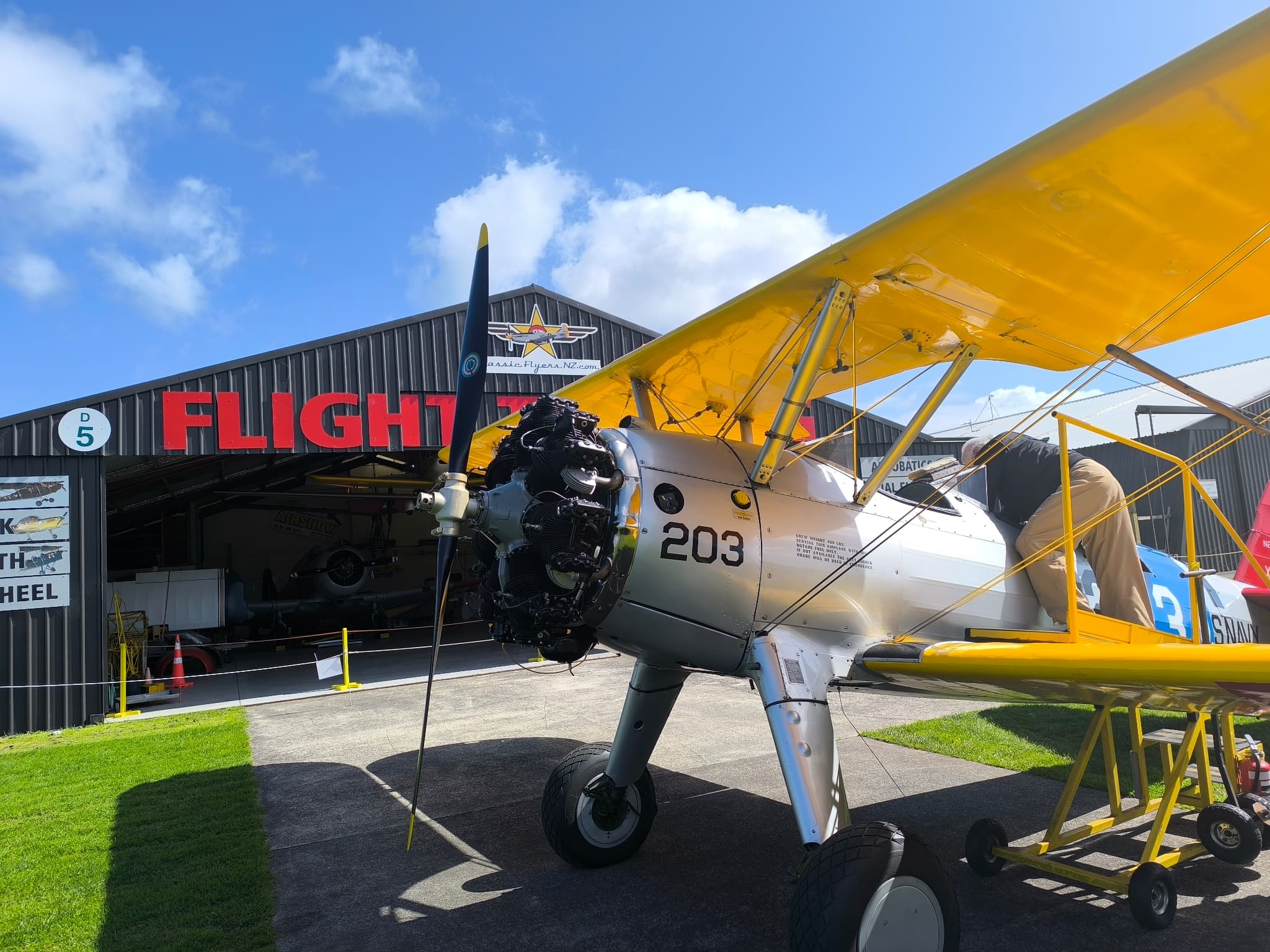 ⇒タウランガにある歴史飛行機博物館を訪れた際に、小型機に乗れることを知り、ご自分でメールで問合せ、今回の搭乗が実現したそうです。 素晴らしい行動力ですね!