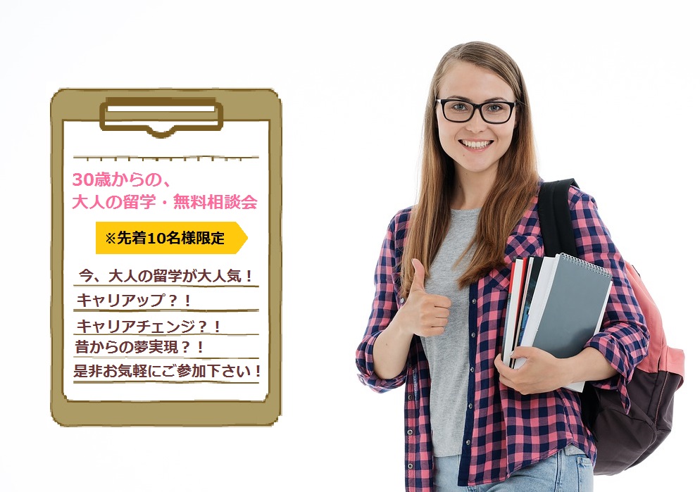 30歳からの大人の留学相談会は、30歳以上の方を限定とした、無料の相談会です。