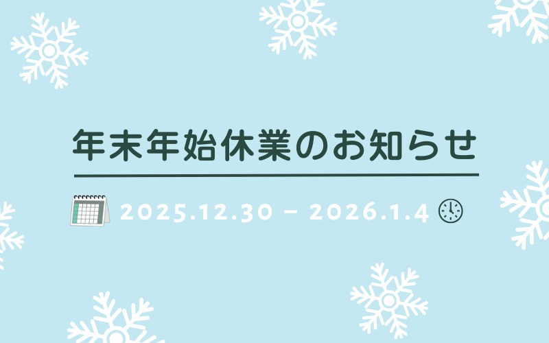 ※年内最終営業日は 2025年12月29日(月)、年始は2026年1月5日(月)より通常営業いたします。