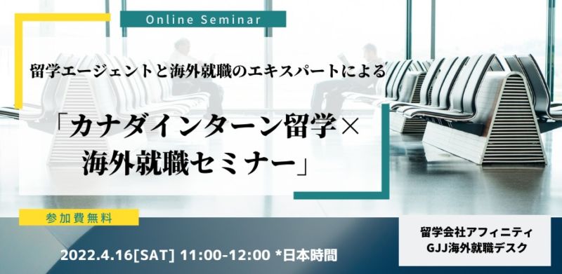 前回好評だった留学&就職セミナーを、留学エージェント アフィニティ と海外就職のエキスパート GJJ海外就職デスクによるコラボにて再度開催決定!