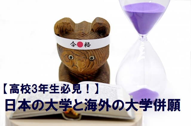 日本の大学の併願ではなく、日本の大学と海外の大学の併願受験ができます。「日本の大学と海外の大学を迷っている」という方、「海外の大学に興味があるのだけど、本当に合格するのか不安だ」という方なども、まずは併願し、合否結果後に最終大学を決定することができます。