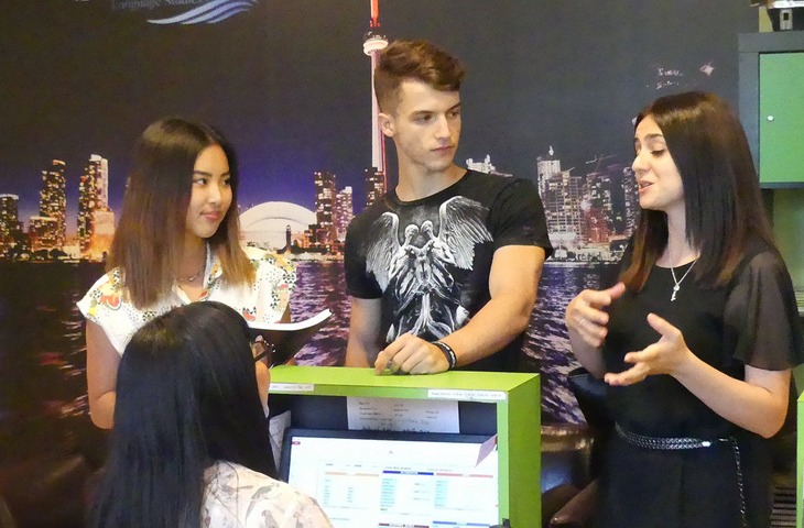 トロントダウンタウン中心部に位置する当校は300名程度の生徒さんが在籍する中規模学校です。11段階のスキル別の細かいレベル分けと平均12名の良質なクラス環境でインタラクティブな授業をモットーに会話の中ら英語を身につけていく実践的な学習が行われています。午前に基礎英語をレベル別に体系良く学び午後は選択授業で個人の弱点やニーズに合うように組めるフレキシブルな時間割もとっても魅力的です。また、生徒さん個々人の学習習熟度や出席率、テストの結果はオンライン上で管理されており、先生からの細かいフィードバックを月に一度もらいながら効率よく学数を進めていくことができます。