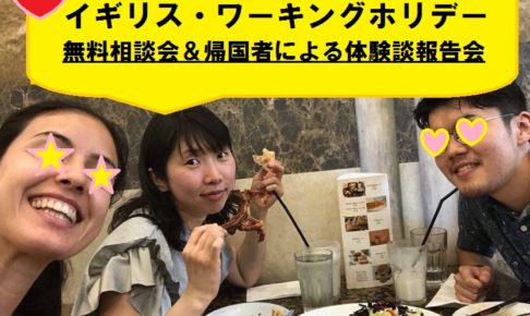 イベント・セミナー情報~ イギリス・ワーホリ ~ 2019年度イギリスワーキングホリデーのまとめ 無料相談会【東京・大阪・福岡】 イギリスワーキングホリデーから帰国したばかりのスタッフによる、報告会同時開催!!新鮮な情報をGetしたい方必見!…